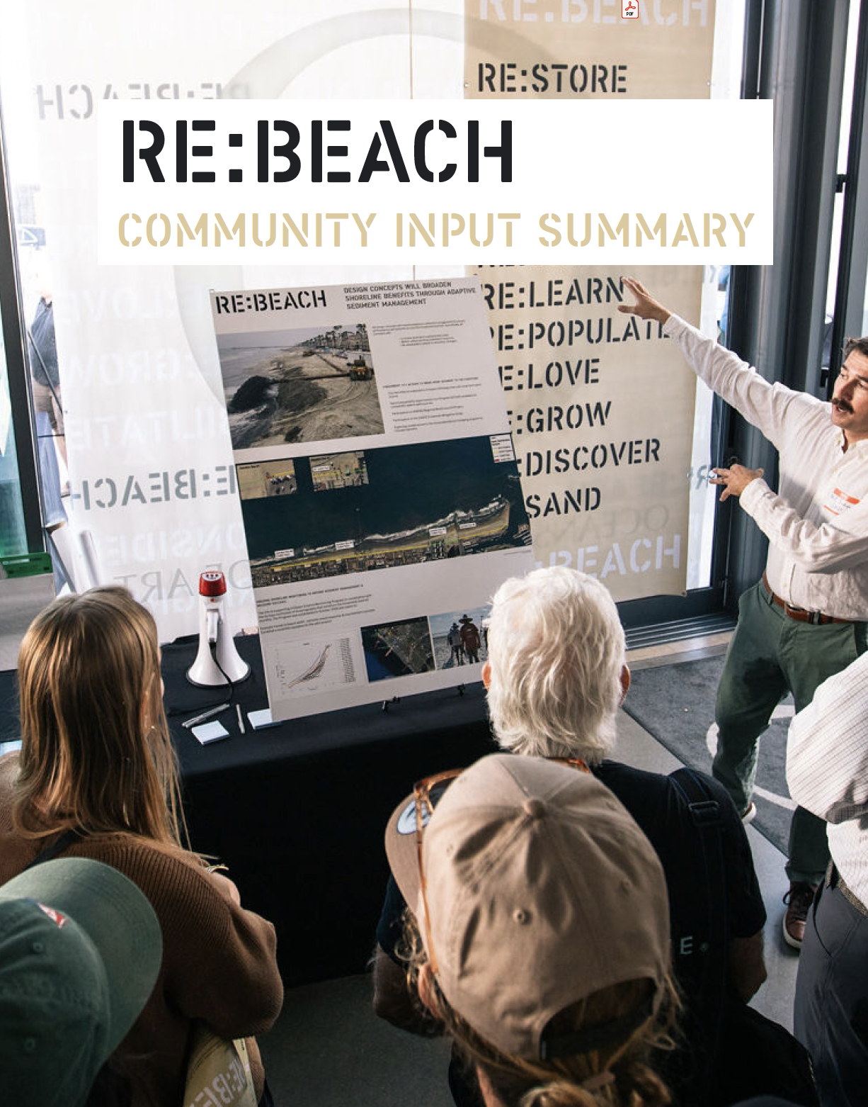 RE:BEACH is a collective effort and we hear you! Throughout the development of the RE:BEACH Pilot Project, public comment and feedback has been provided through online feedback forms. These responses are used by the RE:BEACH Project Team to refine pilot project concepts, inform the site selection, and provide input into the design of the Pilot Project. The Community Input Summaries are documents produced at the terminus of each respective engagement period.