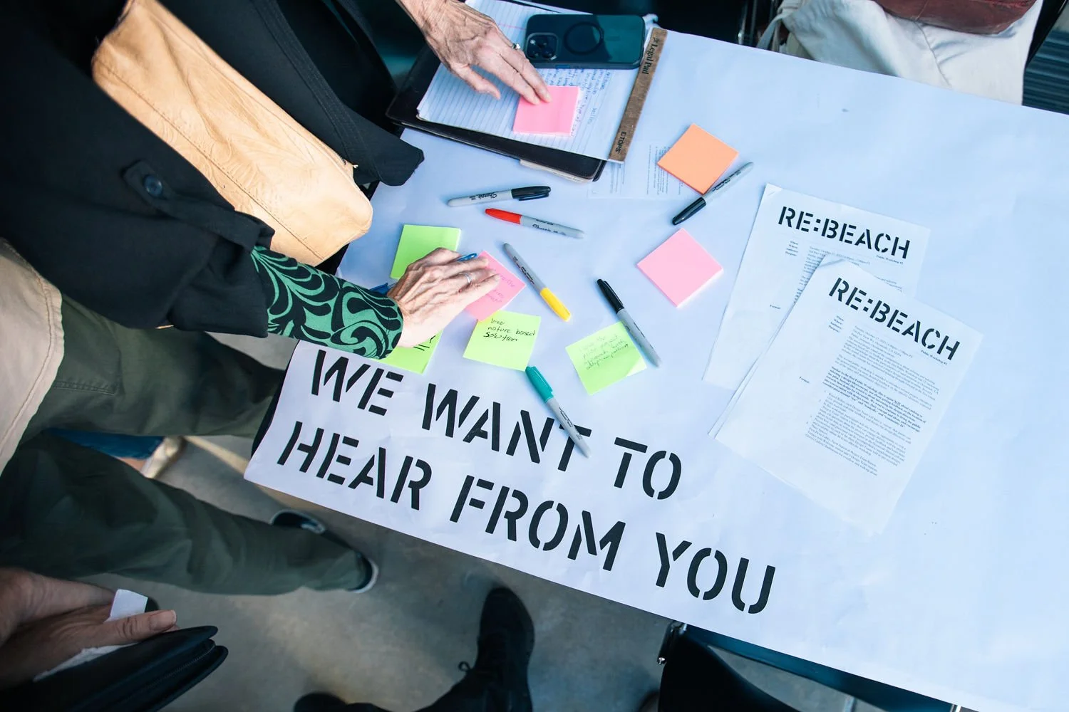 RE:BEACH is a collective effort and we hear you! Throughout the development of the RE:BEACH Pilot Project, public comment and feedback has been provided through in-person and virtual engagement opportunities and online feedback forms. These responses are actively used to refine the pilot design to meet community priorities. Robust community engagement happens at every phase of the RE:BEACH pilot. During the Design Competition, public comment and feedback was provided directly to the Project Team members and Design Competitors at workshops, outreach events, and through online feedback forms. These responses refined the pilot project concepts throughout the competition. Virtual engagement moments continued from to November 2024 during the Siting Analysis, conducted to support the Oceanside City Council in making a decision on the location of the RE:BEACH Pilot Project. In 2025, project partners advanced the Artificial Headlands Design and focused engagement on the proposed headlands at Tyson Street and Wisconsin Avenue. Feedback was used to inform conceptual design, integration with existing infrastructure, and public access to restored sandy beaches.